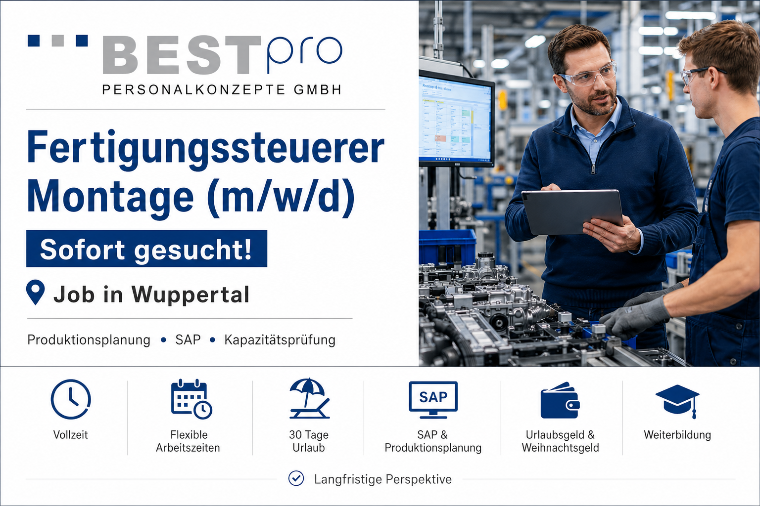 Für ein international tätiges Unternehmen in Wuppertal suchen wir einen Fertigungssteuerer (m/w/d) in Vollzeit. Gesucht wird eine strukturierte und lösungsorientierte Persönlichkeit, die Produktionsabläufe sicher steuert, Engpässe früh erkennt und die Liefertermintreue aktiv absichert. Die zugrunde liegende Anzeige beschreibt die Position ausdrücklich im Bereich Montage und hebt die Verantwortung für Planung, Kapazitäten und Abstimmung mit verschiedenen Schnittstellen hervor.